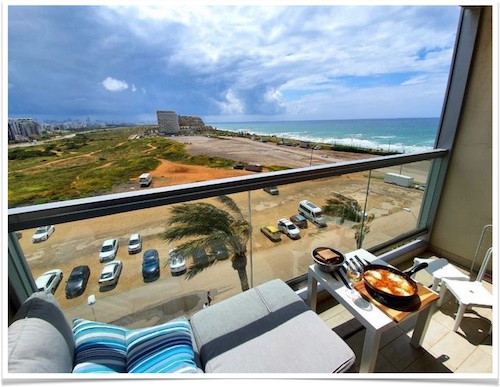 8. זה בוקר חזק עם אנשים ווינרים על החוף בתל אביב. אתה יכול אחר כך לרדת לבירה או הליכה על החוף במרחק 290 מטר